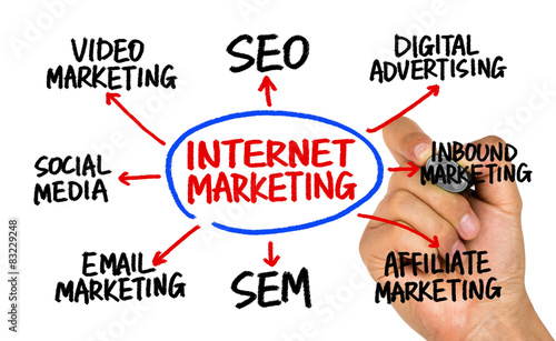 Wall mural : Internet marketing flowchart hand drawing on whiteboard