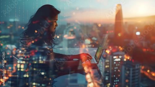 The watermark will not be included on Wall mural.: Internet network connection data exchange digital marketing iot internet of things double exposure w