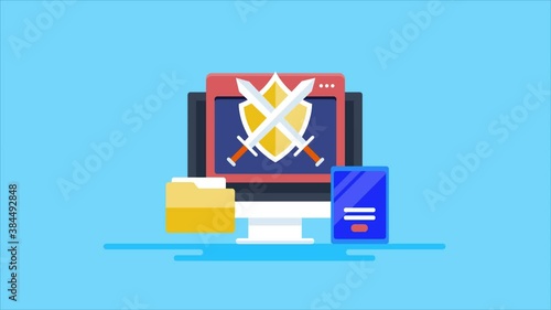 Wall mural internet security & data protection concept. shield with sword, secure password login access, data p - Wall murals Wall mural internet security & data protection concept. shield with sword, secure password login access, data p - Wall murals