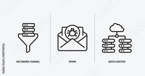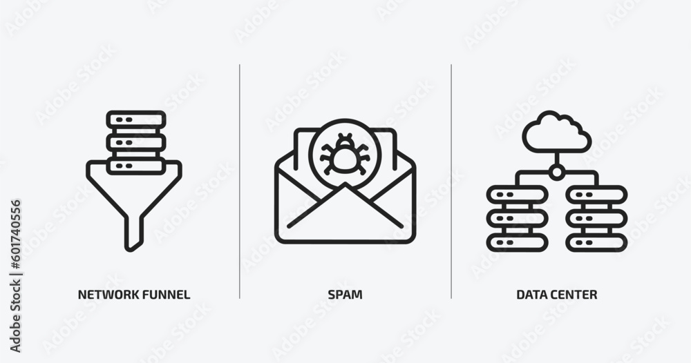 Wall mural internet security outline icons set. internet security icons such as network funnel, spam, data cent - Wall murals Wall mural internet security outline icons set. internet security icons such as network funnel, spam, data cent - Wall murals