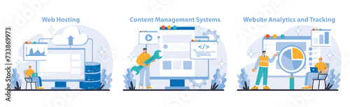 Wall mural : Internet services set - business and marketing - robust web hosting, versatile content management, and