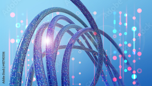 Wall mural : Internet space of open data - global digital flows and structural cyber technologies - 3d illustration