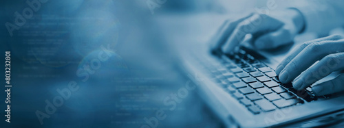 Wall mural internet technology and computer science, closeup hands typing on keyboard, banner background with c - Wall murals Wall mural internet technology and computer science, closeup hands typing on keyboard, banner background with c - Wall murals