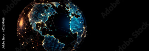 Wall mural : Internet technology with global communication network, panoramic layout - generative ai