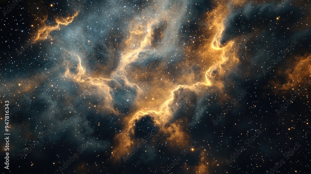 Wall mural interstellar cloud of star dust in a 3d cartoon rendering image of outer space - Wall murals Wall mural interstellar cloud of star dust in a 3d cartoon rendering image of outer space - Wall murals