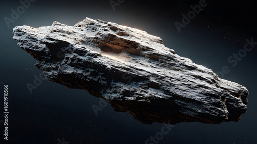 Wall mural : Interstellar object - gray rocky asteroid space object floating in dark