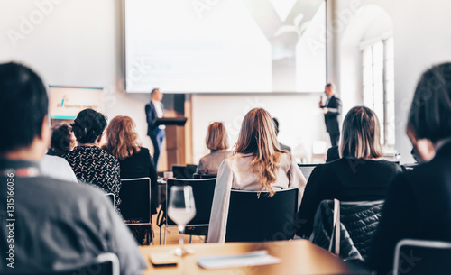 The watermark will not be included on Wall mural.: Interview and round table discussion at business convention and presentation - audience at the confer