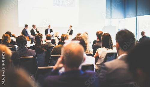 The watermark will not be included on Wall mural.: Interview and round table discussion at business convention and presentation - audience at the confer