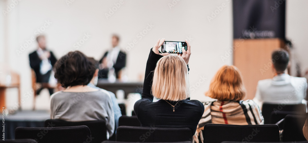 The watermark will not be included on Wall mural.: Interview and round table discussion at business convention and presentation - audience at the confer