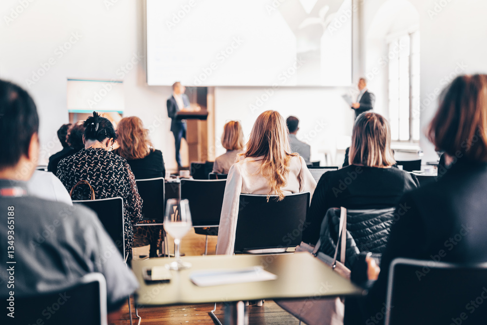 The watermark will not be included on Wall mural.: Interview and round table discussion at business convention and presentation - audience at the confer