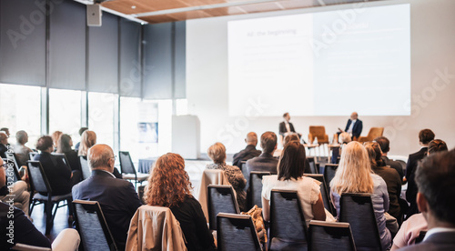 The watermark will not be included on Wall mural.: Interview and round table discussion at business convention and presentation - audience at the confer