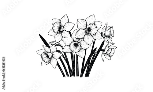 Wall mural intricate black and white daffodil sketch with detailed petals and stems. vector retro hand drawn il