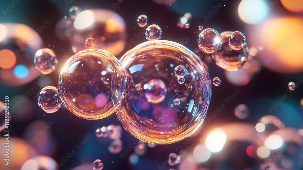 The watermark will not be included on Wall mural.: Intricate composition of iridescent bubbles forming unique shapes against soft gradient background