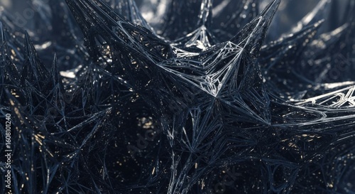 Wall mural intricate dark spiky web structure with subtle golden highlights in macro view