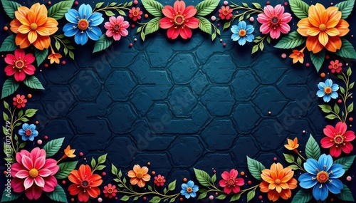 The watermark will not be included on Wall mural.: Intricate floral motif within a hexagonal grid , dark, line art