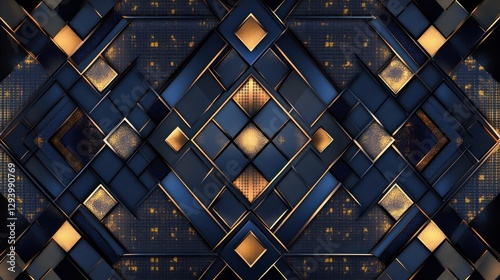 The watermark will not be included on Wall mural.: Intricate geometric pattern in blue and gold tones for design use