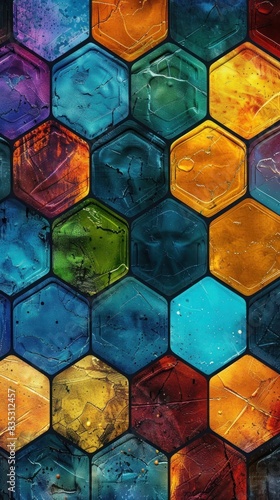 The watermark will not be included on Wall mural.: Intricate honeycomb-inspired design set against a contrasting multicolored backdrop, capturing the e