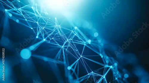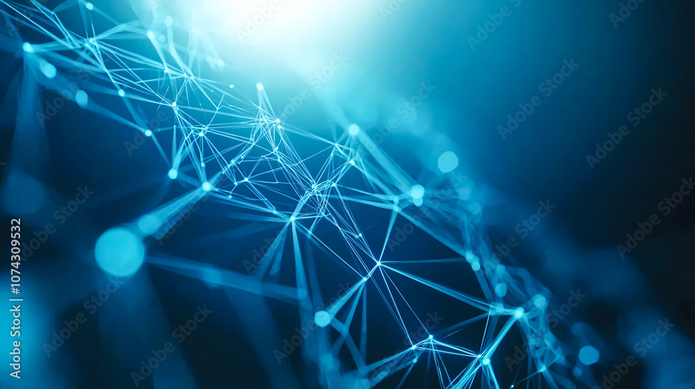 Wall mural intricate network of blue and cyan connecting points and lines on a dark background representing dig