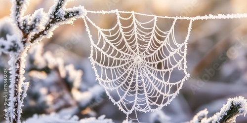 The watermark will not be included on Wall mural.: Intricate spider web adorned with delicate hoar frost, creating a mesmerizing display of nature s ar