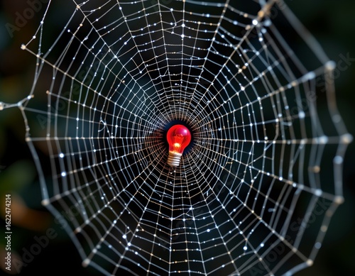 The watermark will not be included on Wall mural.: Intricate spider web with glowing red object