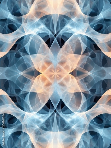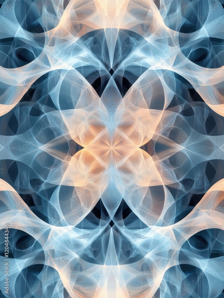 Wall mural : Intricate swirling patterns of blue and orange hues create a mesmerizing abstract design with a symm