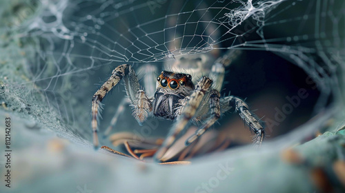 Intricate threads: macro shot of a spider weaving its webWall mural