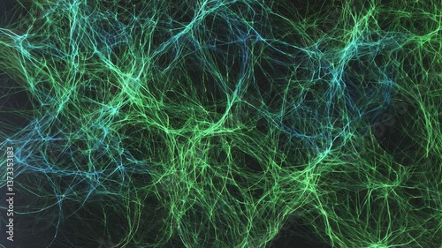 The watermark will not be included on Wall mural.: Intricate web of green and blue lines creating a mesmerizing abstract pattern reminiscent of neural
