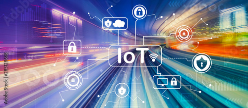 Wall mural : Iot security theme with abstract high speed technology pov motion blur
