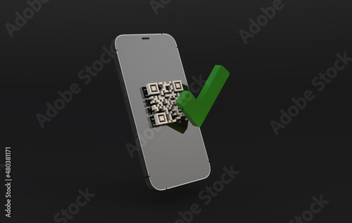 Wall mural iphone 13 pro with digital code qr and green check . qr code verification service web