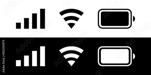 Wall mural iphone ios notification bar wifi signal battery user interface icons. black white icon set of phone