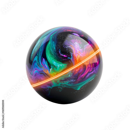 The watermark will not be included on Wall mural.: Iridescent sphere with luminescent band isolated on a plain transparent field