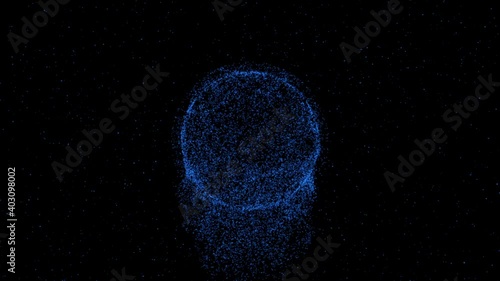 Wall mural isolated black background. abstract particles, planet, electromagnetic radiation in outer space. 3d