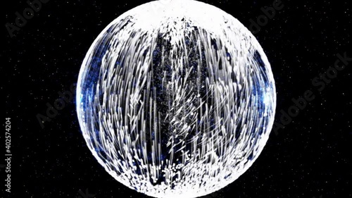 Wall mural isolated black background. the rotating planet emits cosmic illumination in the moonbeams against th - Wall murals Wall mural isolated black background. the rotating planet emits cosmic illumination in the moonbeams against th - Wall murals