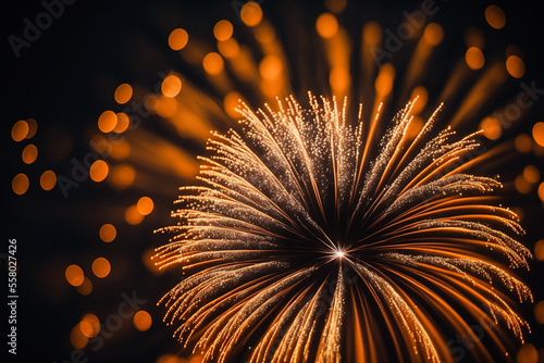 Wall mural : Isolated firework exploding in pitch black sky made by generative ai