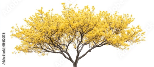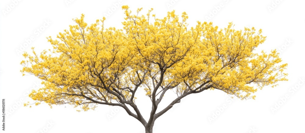 Isolated image of a yellow flowering tree in full bloom against a white background ideal for backgroWall mural