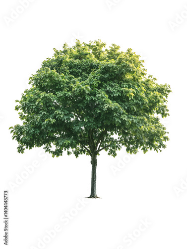 Wall mural isolated mature broadleaf tree with dense round canopy and defined trunk on translate background, id