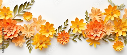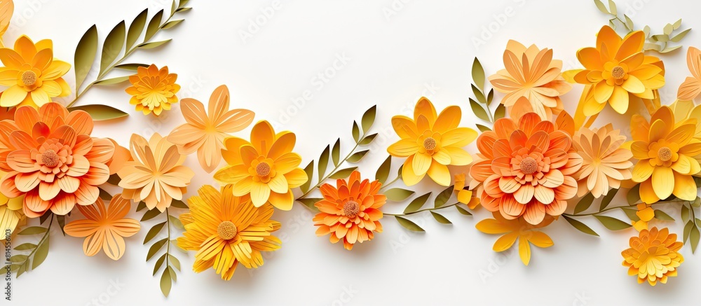 Wall mural : Isolated on a white background a corner of the flat lay features a frame decoration made of yellow a
