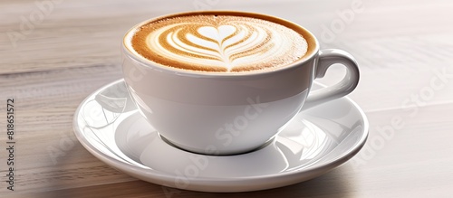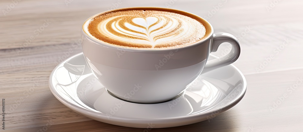 Isolated on white there is a cappuccino with a heart shape the image includes copy space with a clipWall mural