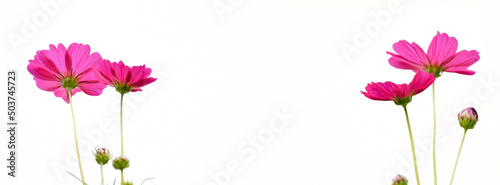 Wall mural isolated pink cosmos flower on white background.