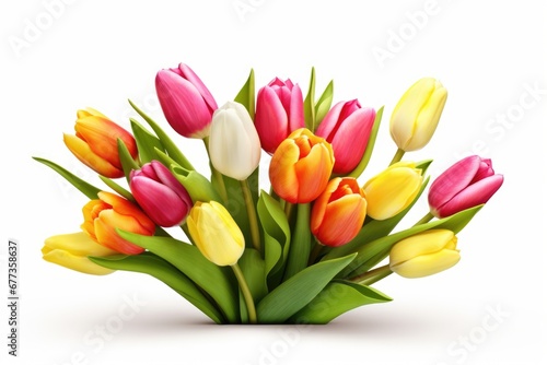 Wall mural isolated tulip with variable colors on white background in spring. spring seasonal concept.