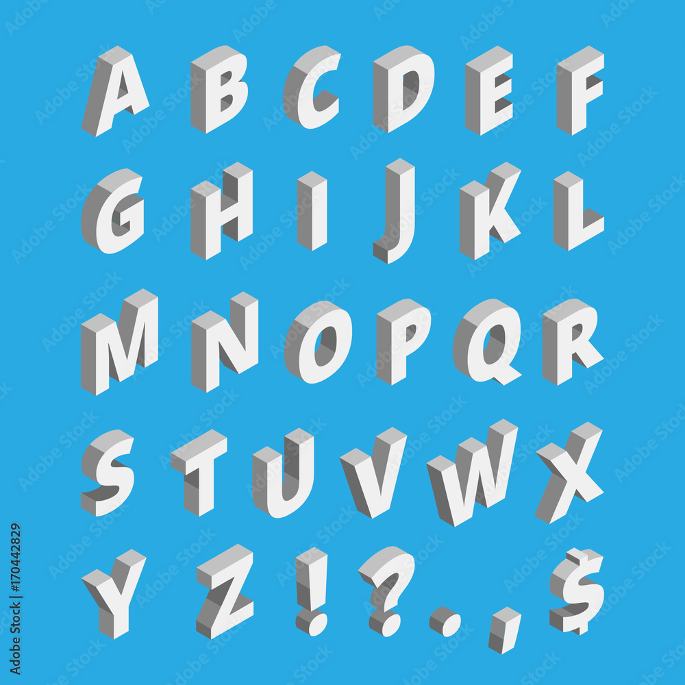 Wall mural isometric alphabet. techno font with block letters - Wall murals Wall mural isometric alphabet. techno font with block letters - Wall murals
