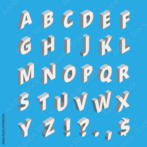 The watermark will not be included on Wall mural.: Isometric alphabet - techno font with block letters