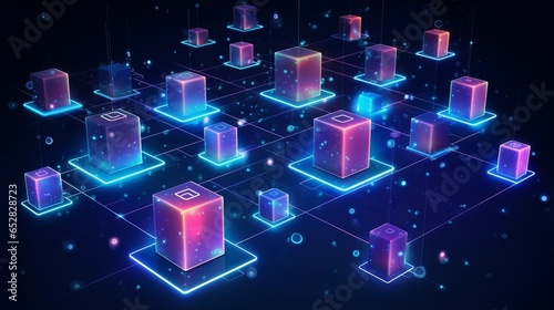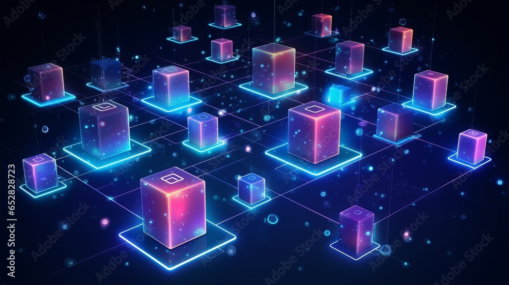 Wall mural : Isometric blockchain connection: digital blocks forming crypto chain - abstract technology backgroun