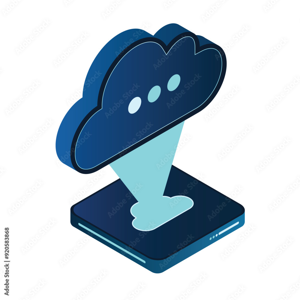 Wall mural isometric cloud database. cloud computing and file cloud storage. modern technology. vector illustra