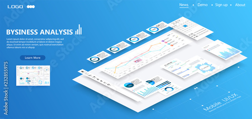 The watermark will not be included on Wall mural.: Isometric conceptual page website with disassembled user interface - ui, ux development vector illust
