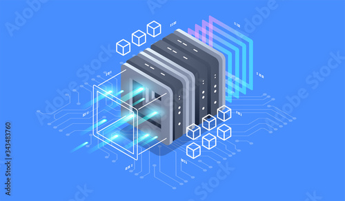 The watermark will not be included on Wall mural.: Isometric design concept virtual reality and augmented reality - software development and programming