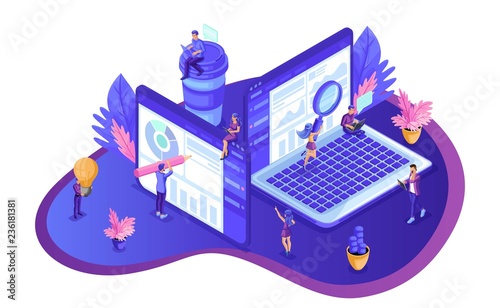 Wall mural isometric design seo analytics. search engine optimization analysis concept. it specialists working  - Wall murals Wall mural isometric design seo analytics. search engine optimization analysis concept. it specialists working - Wall murals