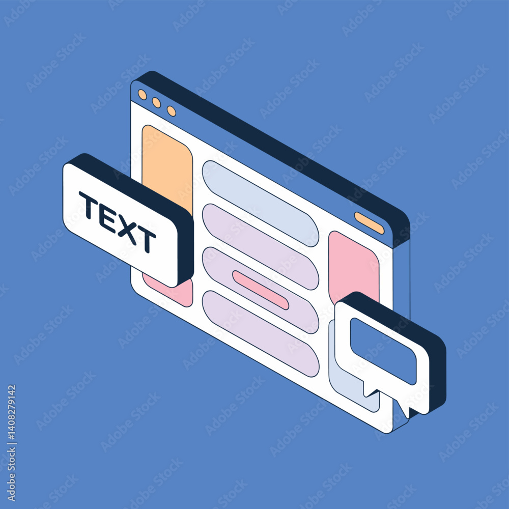 Wall mural isometric illustration of a webpage user interface with message bubbles and text box. - Wall murals Wall mural isometric illustration of a webpage user interface with message bubbles and text box. - Wall murals
