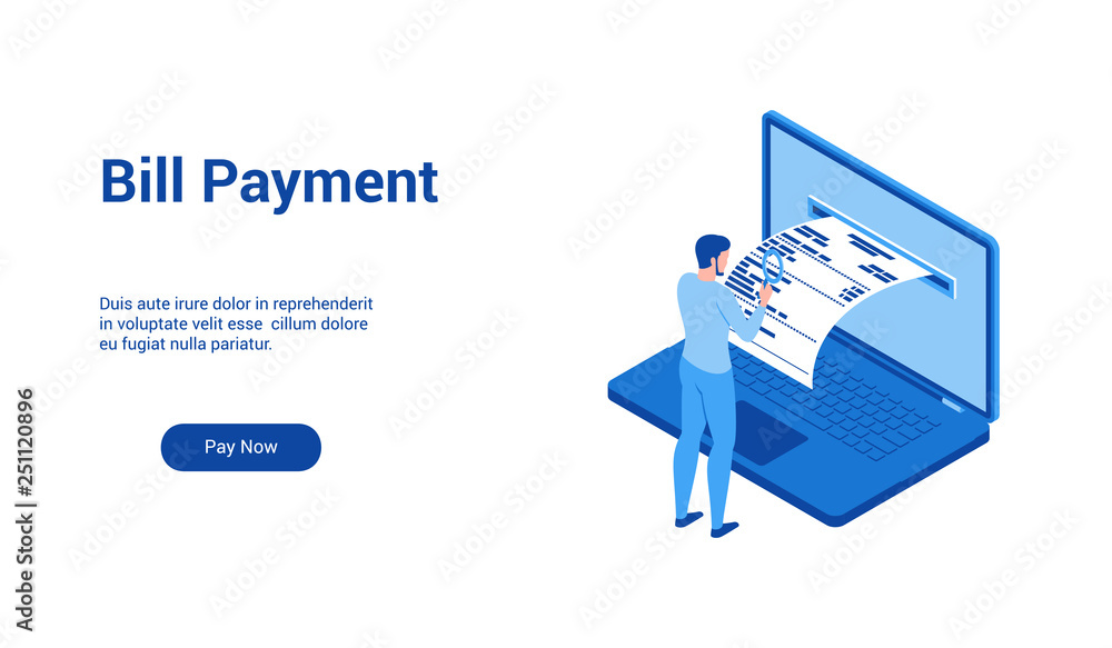 Wall mural isometric landing page template for bill payment. vector illustration mock-up for website and mobile