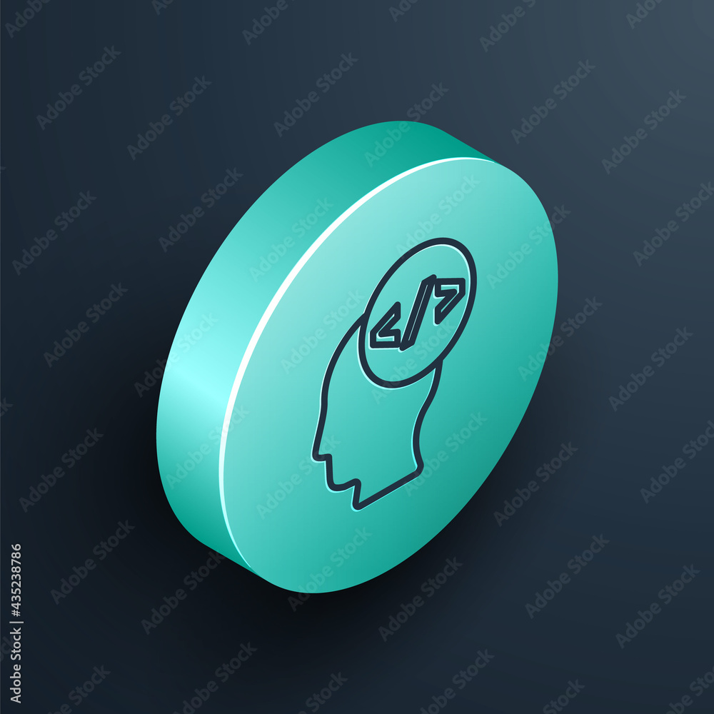 Wall mural isometric line web design and front end development icon isolated on black background. turquoise cir